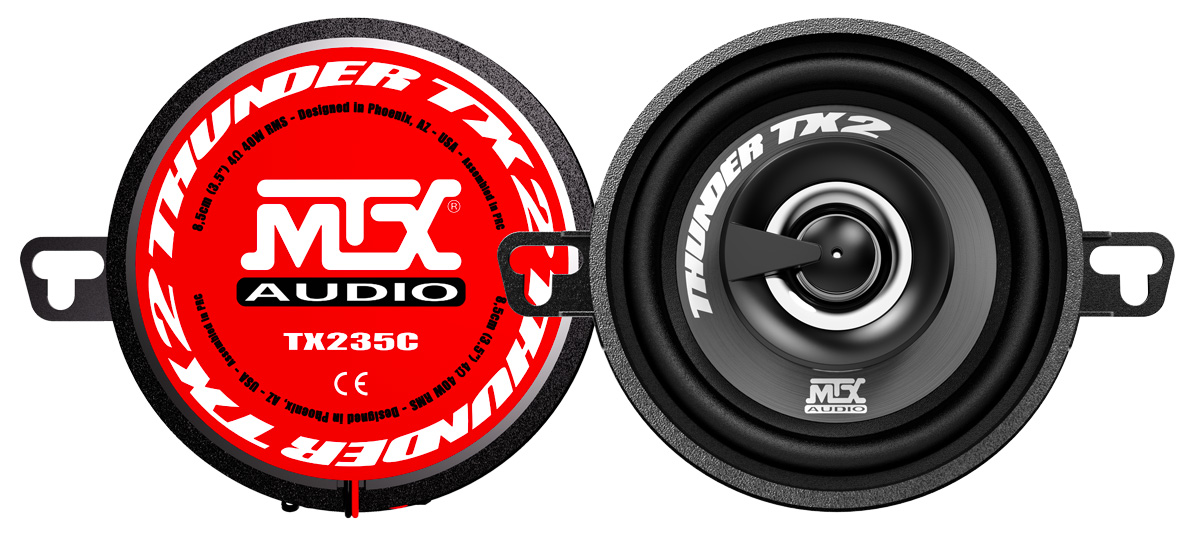 Les haut-parleurs coaxiaux MTX TX235C brillent par leur qualité sonore, leur tenue en puissance très élevée et leur finition exceptionnelle. Il est conseillé d'utiliser les TX235C avec un petit caisson amplifié comme le MTX RTP8, le RTU8P ou le RTF10P pour renforcer les basses fréquences.