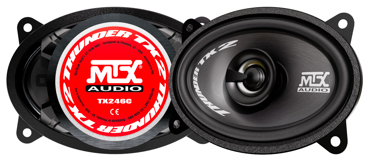 Les haut-parleurs coaxiaux MTX TX246C brillent par leur qualité sonore, leur tenue en puissance très élevée et leur finition exceptionnelle. Il est conseillé d'utiliser les TX246C avec un petit caisson amplifié comme le MTX RTP8, le RTU8P ou le RTF10P pour renforcer les basses fréquences.